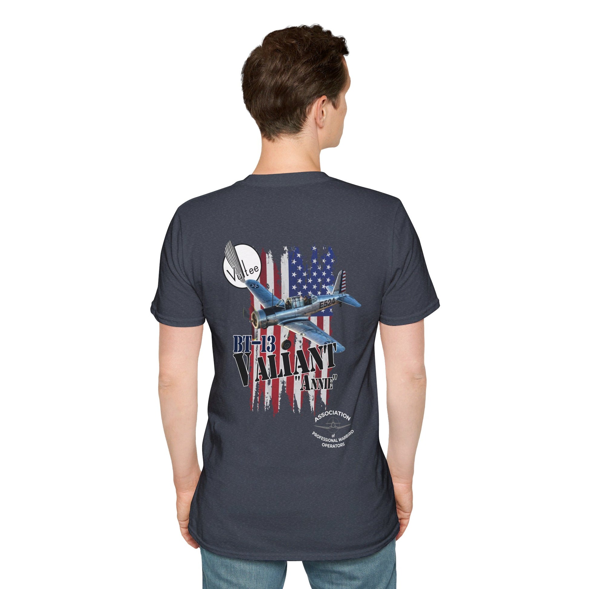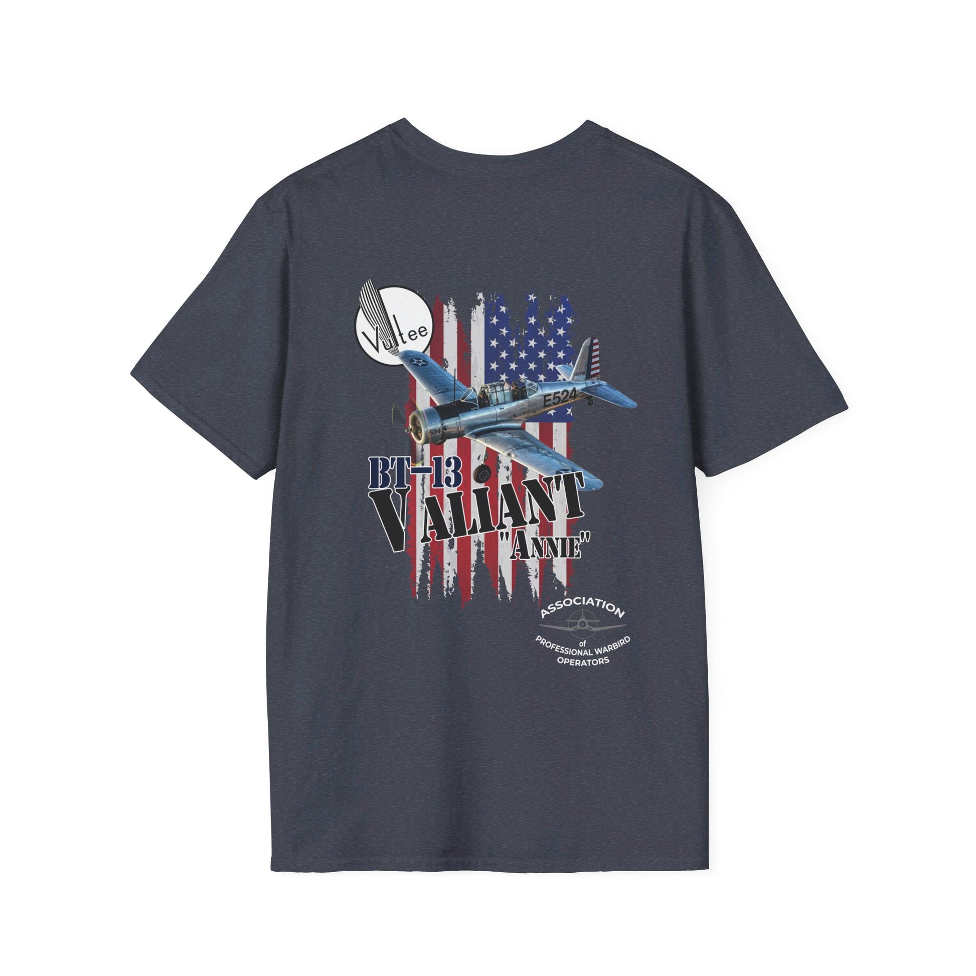 Show your support for the Association of Professional Warbird Operators with this awesome Warbird shirt depicting "Annie", the Vultee BT-13 under restoration by Valiant Effort, LLC!